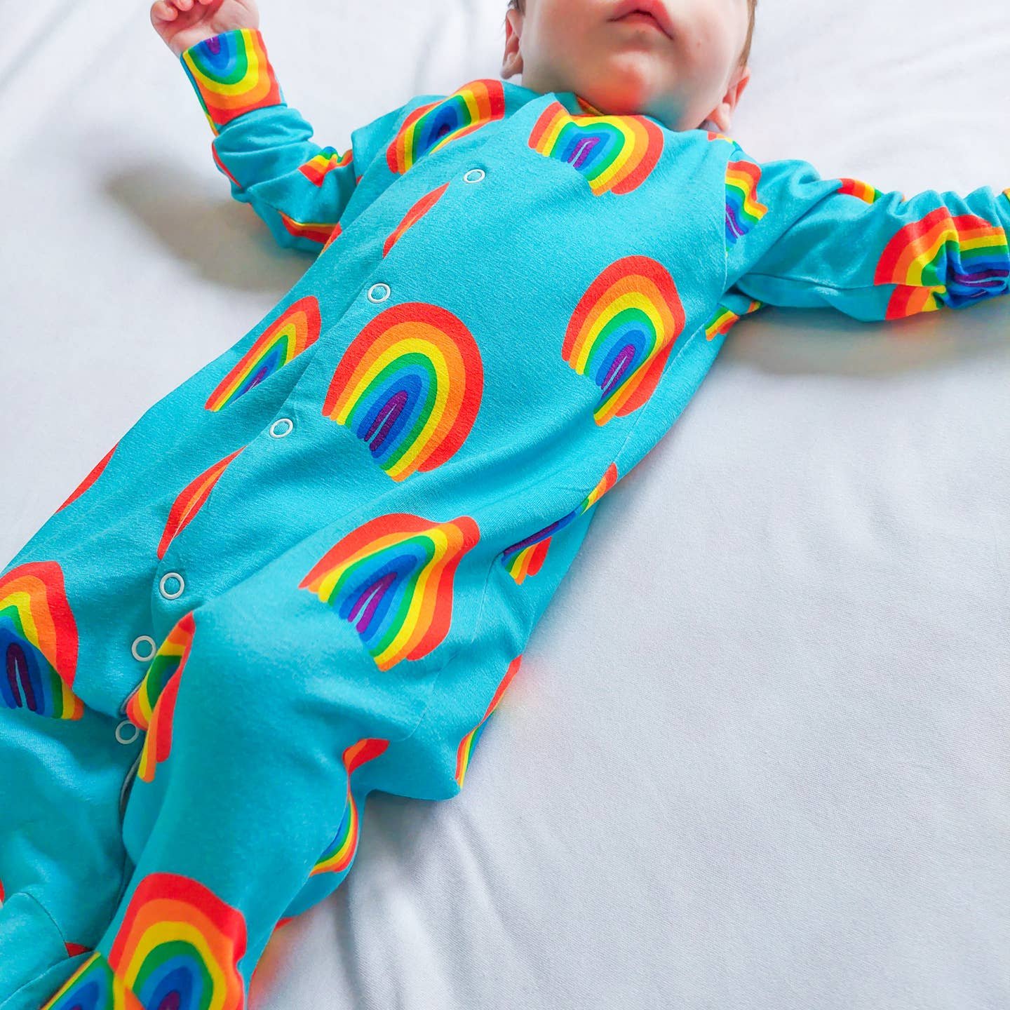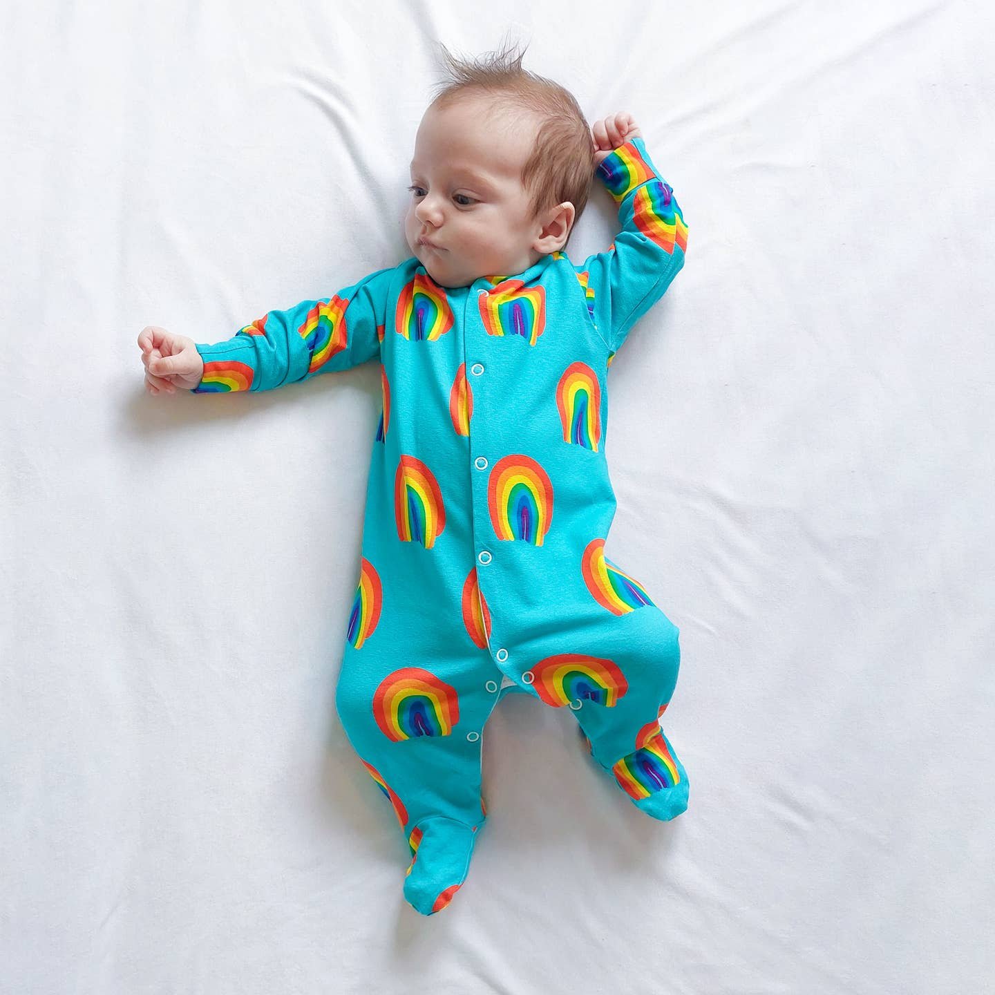 Our new and gorgeous Rainbow heart print sleep suit is the perfect one-piece for any baby.