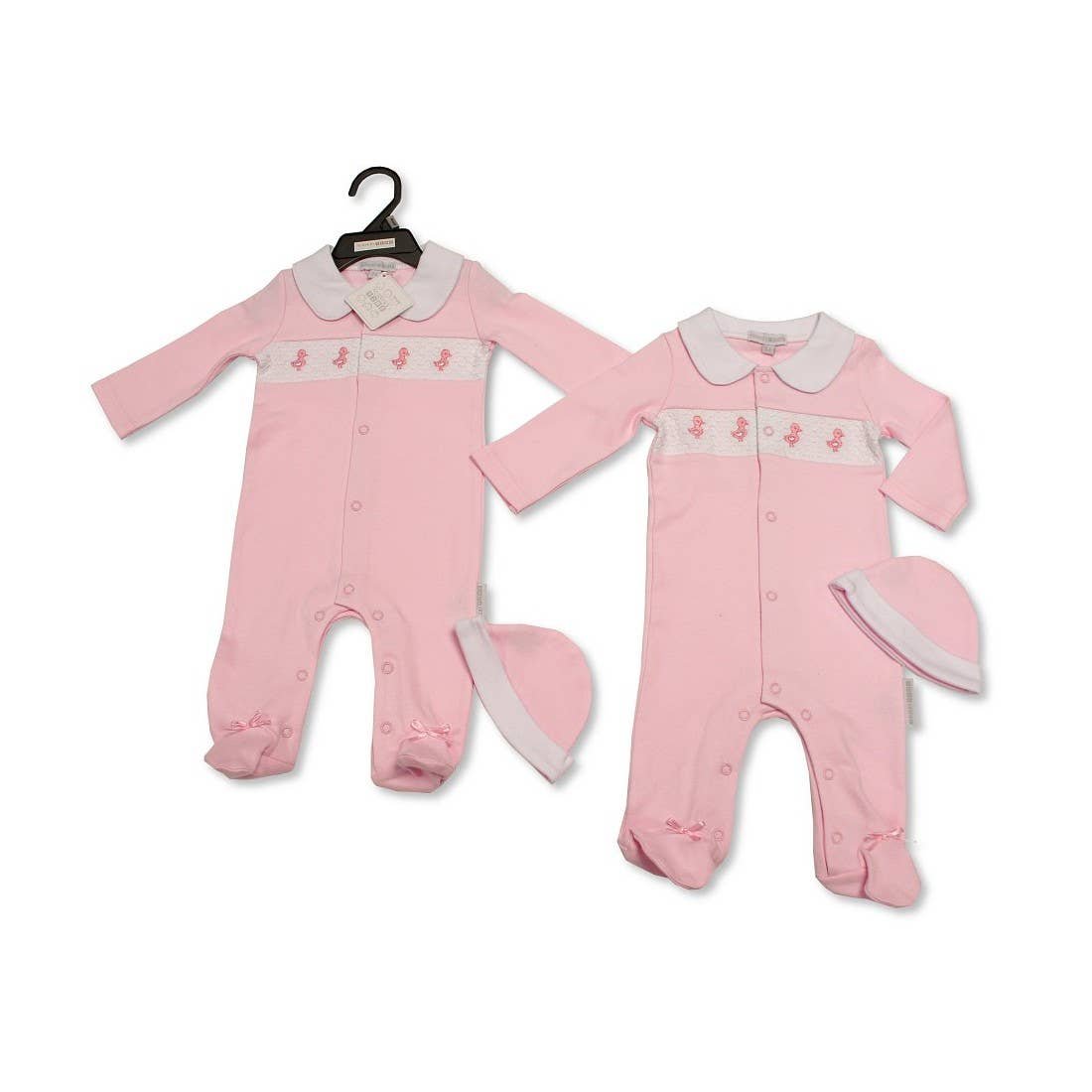 Baby Girls All in One with Hat – Quack, Quack Style No Bis-2100-2301 Material: 100% Cotton With Embroidery/ Applique Colour: Pink